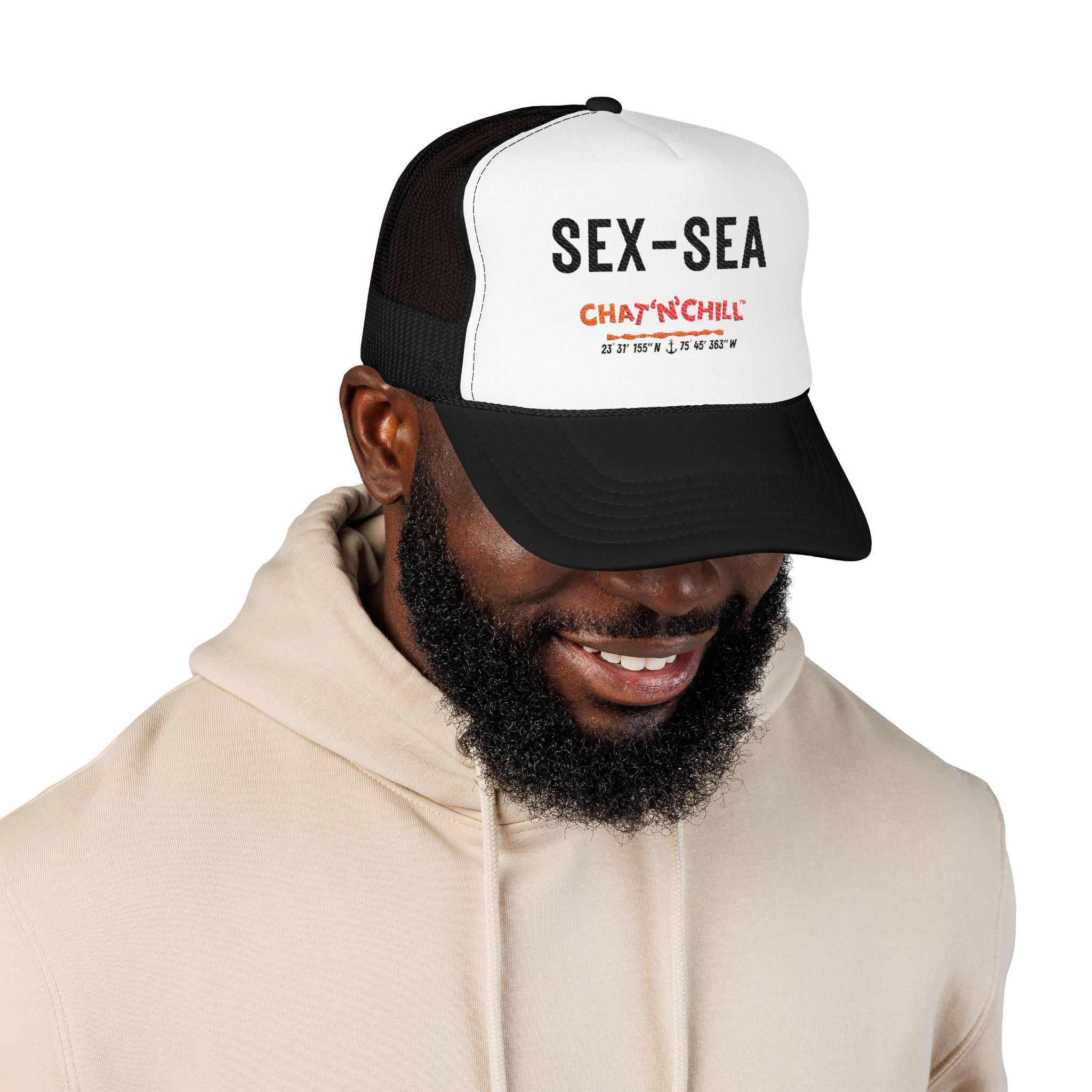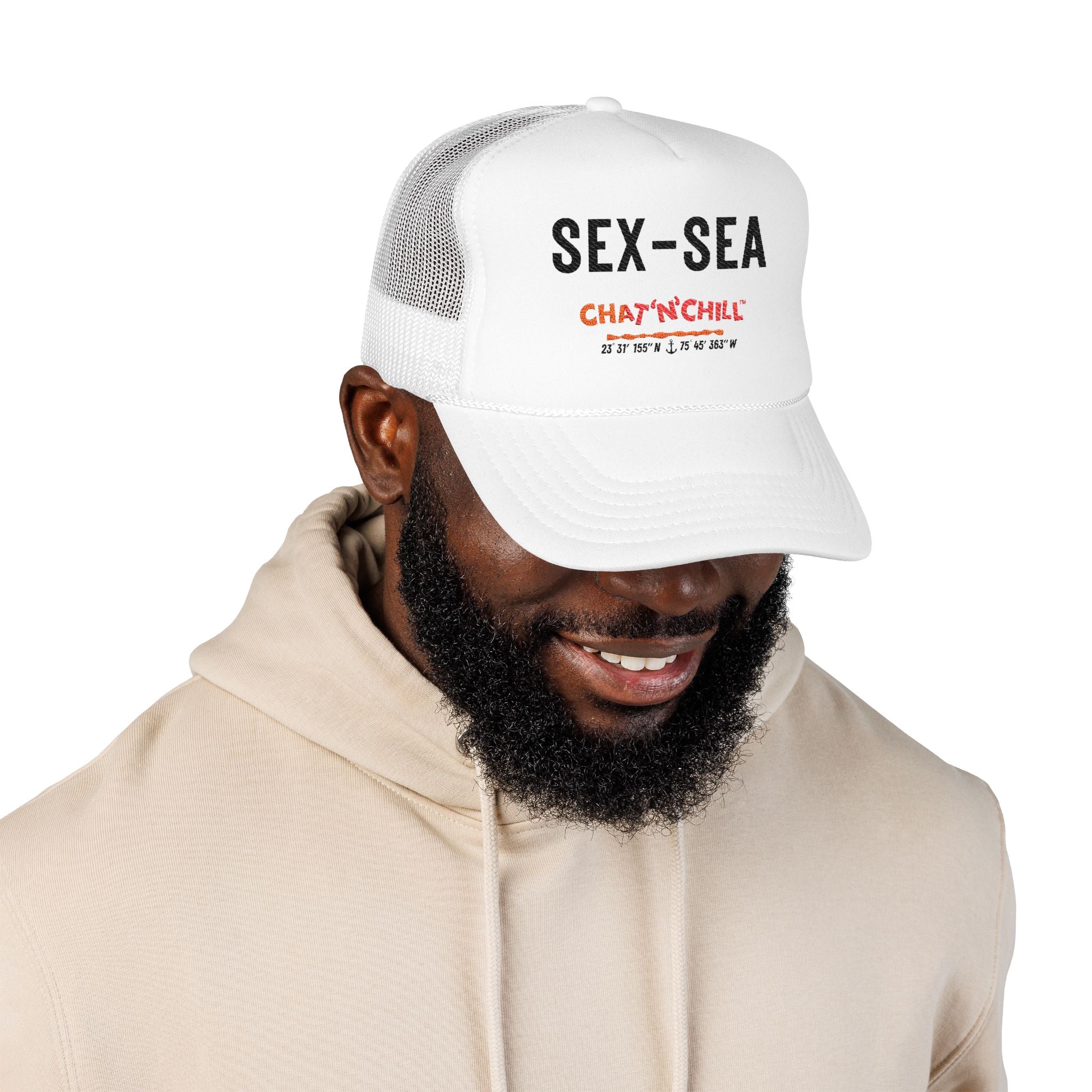 Sex-Sea Embroidered Trucker Hat — Retro Chat 'N' Chill® Cap